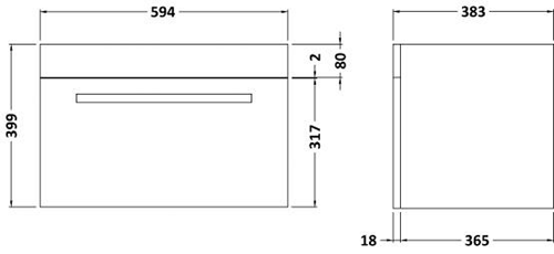 - Back to wall unit size: 500W x 200D x 800H mm.