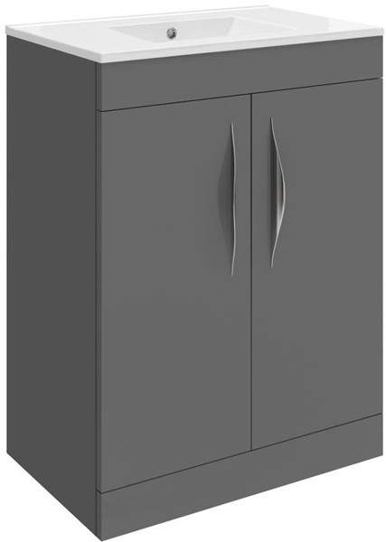 600mm Vanity unit in gloss grey with doors, chrome handle and 122 mid-edged basin.