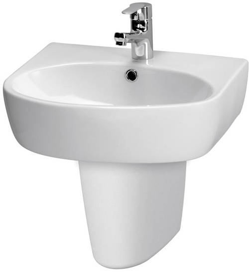 Cairo bathroom suite with compact toilet, soft close seat, 500mm one tap hole basin and semi pedestal.