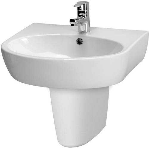Cairo bathroom suite with compact toilet, soft close seat, 550mm one tap hole basin and semi pedestal.