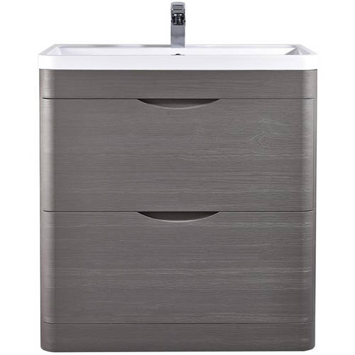 Premier Eclipse vanity unit pack 2 in midnight grey woodgrain finish with 800mm vanity unit, basin and 550mm back to wall WC unit.