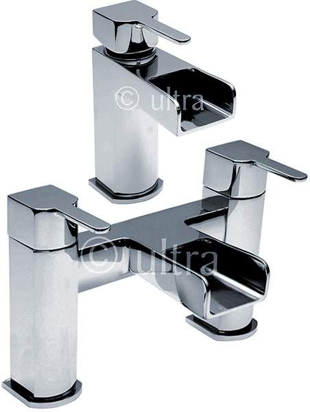 Waterfall basin mixer and bath filler tap set in chrome.