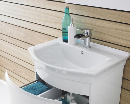 Canopy 600mm Wall hung vanity unit in white with drawers and ceramic basin.