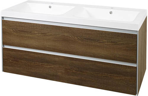 The Hudson Reed Erin minimalist furniture range in Light Oak or Textured Oak, features either an 800mm or 1200mm wall mounted basin cabinet with two soft-close metal box drawers, plus a wall mounted side cupboard for additional storage. The polymarble basin completes the fuss-free bathroom look.