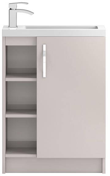 Hudson Reed Apollo Compact floor standing vanity unit with shelves and basin in cashmere.