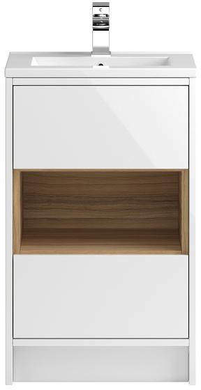 Hudson Reed Coast floor standing vanity unit in gloss white finish with ceramic basin (type 2).