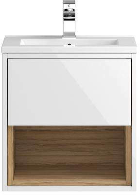 Hudson Reed Coast wall mounted vanity unit in gloss white finish with ceramic basin (type 2).