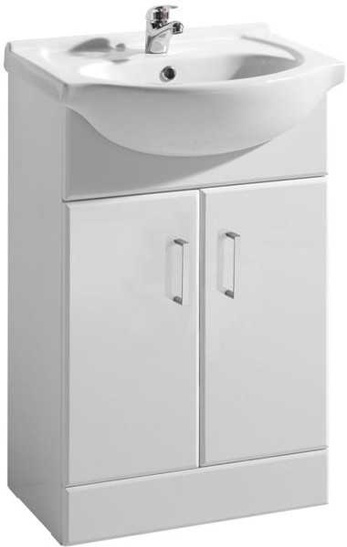 Beaufort vanity unit in white with mirror and ceramic basin.