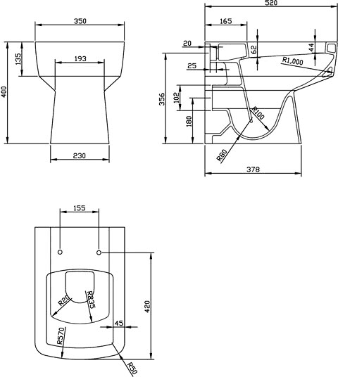- Back to wall unit size: 550W x 200D x 850H mm.