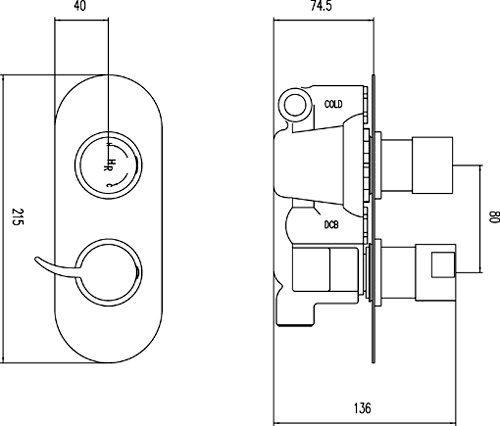 Twin concealed thermostatic shower valve in chrome with Symmetry rigid riser, rain shower head, diverter, shower handset and hose.