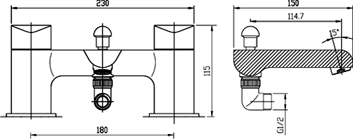 Bath shower mixer tap in chrome with shower kit.
