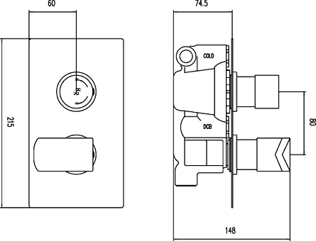 - Twin shower valve with 2 outlets, 1 control for temperature and 1 control diverts water flow between the 2 outlets.