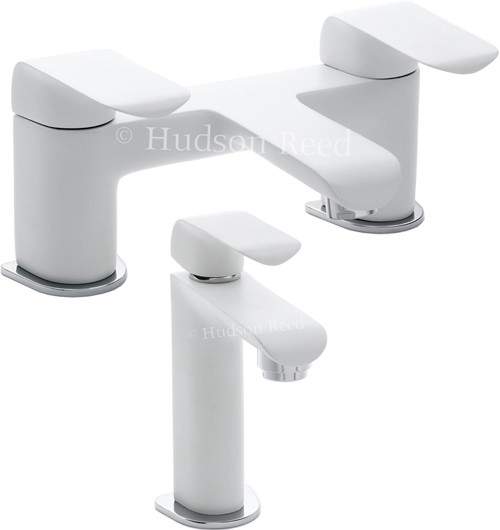 Basin mixer and bath filler tap set in white and chrome.
