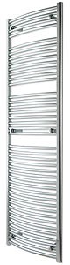 Curved heated towel rail in chrome. 600x1800mm. 3730 BTU. Suitable for use with 400w or 600w heating element.