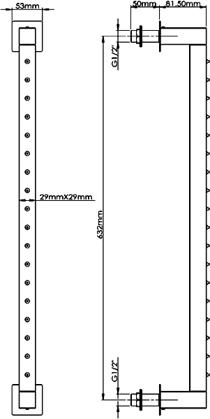 - Diverts between rainbars or shower head.