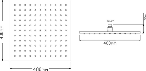Thermostatic twin concealed shower valve set in chrome with 400x400mm square shower head and ceiling mounting arm.