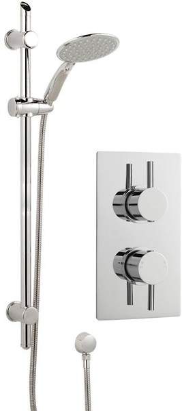 Thermostatic twin concealed shower valve set in chrome with slide rail kit and round handset.