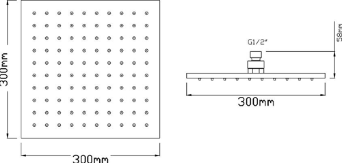 - Square stainless steel shower head included (300x300mm).