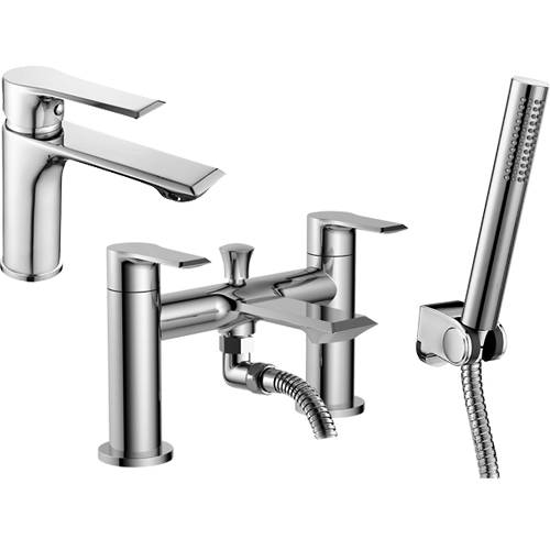 Nuie Limit basin and bath shower mixer tap pack in chrome with kit.