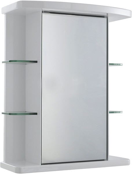 Verve mirror bathroom cabinet with glass shelves. Size 530W x 670H x 255D mm.