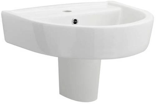 Marlow four piece bathroom suite with flush to wall toilet, soft close seat, basin and semi pedestal.