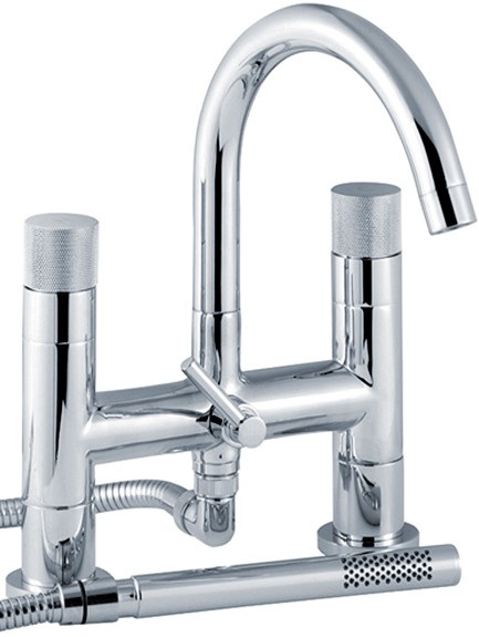 Bath shower mixer tap in chrome with shower kit and swivel spout.