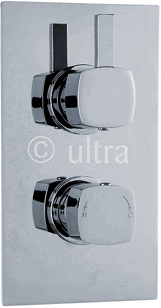 Twin concealed thermostatic shower valve in chrome.