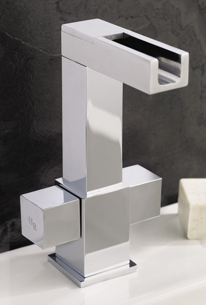 Waterfall basin mixer tap in chrome.