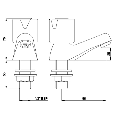 This range of bathroom taps is available with either ceramic valves or standard screw down valves.