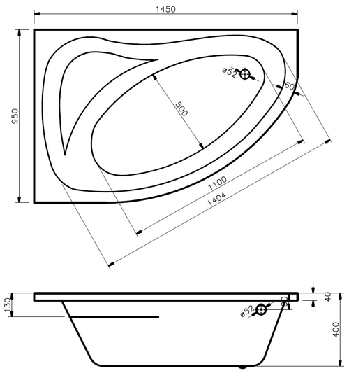 - Right handed bath.