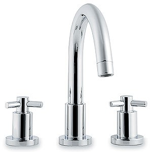 3 Tap hole deck mounted bath filler with small swivel spout.