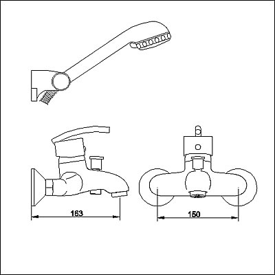 Allure single lever wall mounted bath shower mixer with shower kit.