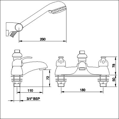 Bath shower mixer with shower kit.