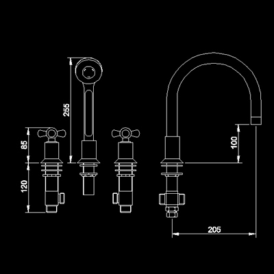 4 Tap hole bath shower mixer with swivel spout and shower kit.