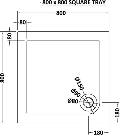 Acrylic capped low profile square shower tray. Size 800 x 800 x 45 mm.