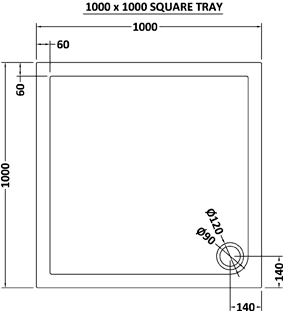 Acrylic capped low profile square shower tray. Size 1000 x 1000 x 40 mm.