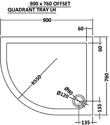 Acrylic capped low profile offset quadrant shower tray. Size 900 x 760 x 40 mm. Left handed.