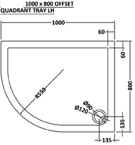 Acrylic capped low profile offset quadrant shower tray. Size 1000 x 800 x 40 mm. Left handed.