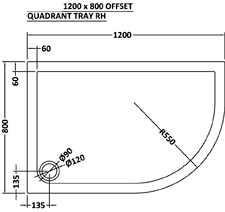 Easy plumb low profile offset quadrant shower tray, with adjustable legs and removable side panel for easy installation and maintenance. Size 1200 x 800 x 40 mm. Right handed.