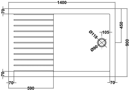 Walk in shower tray. Size 1400x900x40mm.