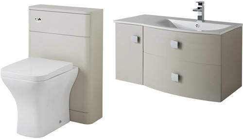 Hudson Reed Sarenna 1000mm wall mounted right handed vanity unit in cashmere finish with 500mm floor standing WC unit.