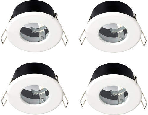 4 x Round designer shower spot light fittings in white with cool white LED lamps (240v).