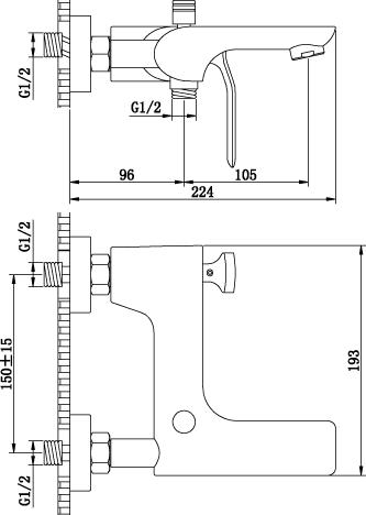 Larger image of Ultra Alaric Bath Shower Mixer Tap With Shower Kit & Wall Bracket (Chrome).Technical image of Ultra Alaric Bath Shower Mixer Tap With Shower Kit & Wall Bracket (Chrome).