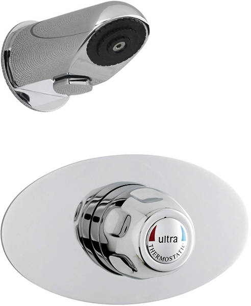 TMV3 concealed sequential thermostatic shower valve in chrome with anti-vandal shower head.