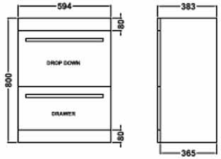 - Vanity unit size: 594W x 383D x 800H mm.