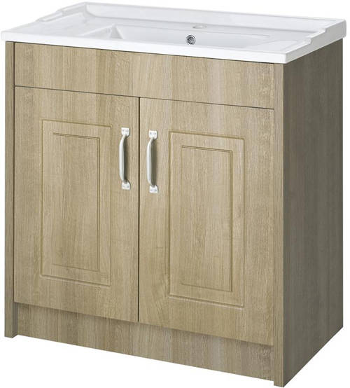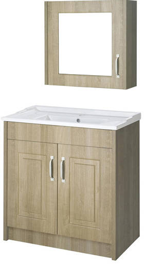 York traditional 800mm vanity unit with ceramic basin and mirror cabinet in oak.