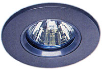 Low voltage satin chrome halogen downlighter with lamp and transformer.