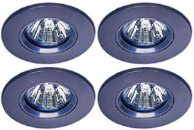 Set of 4 low voltage satin chrome halogen downlighter with lamps and transformers.