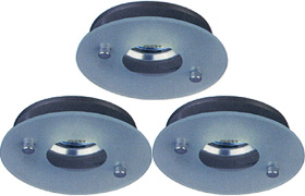 Set of 3 mains 240V satin chrome lightglass halogen downlighter with lamp.