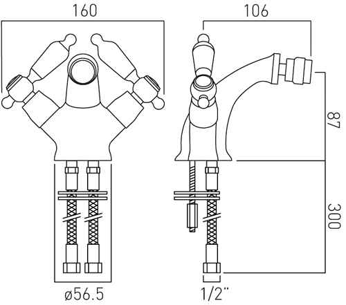 Kensington traditional mono basin and bidet mixer taps pack in chrome and black with pop up basin wastes.
